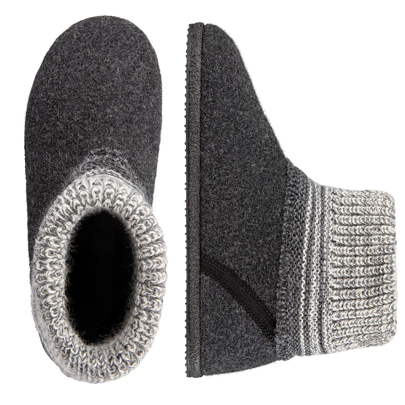 The Baumkirchen high slipper is made of virgin wool and has a soft rubber sole. This comfortable high slipper with elasticated cuff scores highly with its enormous feel-good factor. The reinforced heel and flexible, non-slip sole provide perfect support. The upper material made of fine virgin wool keeps this shoe pleasantly warm even in colder temperatures. The soft rubber sole is non-slip, lightweight and flexible. A soft virgin wool midsole provides slight cushioning when walking and creates a barefoot feeling.